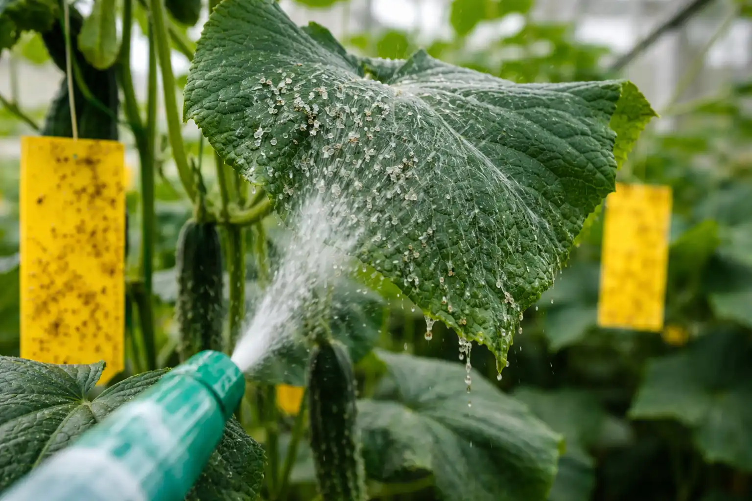 Actas gali nudeginti švelnius agurkų lapus, todėl geriau jį pakeisti silpnu skalbinių muilo tirpalu.