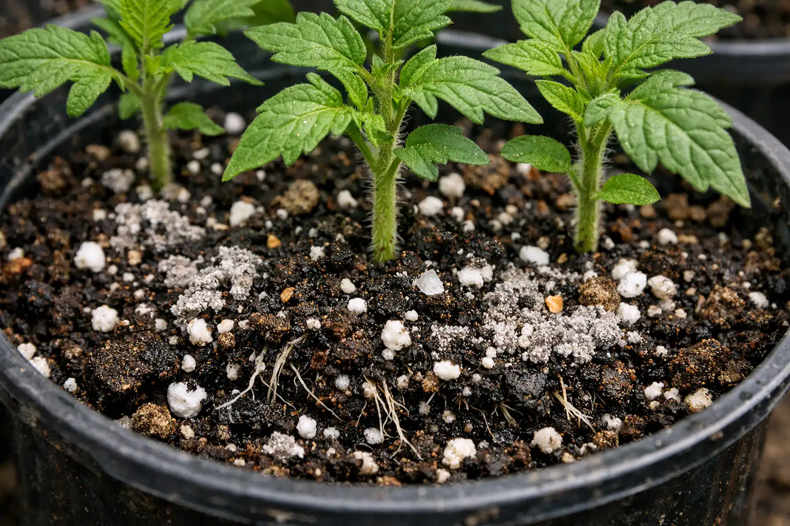 Šis mineralas veikia kaip kempinė, sugeria drėgmės perteklių ir prireikus atiduoda ją šaknims.