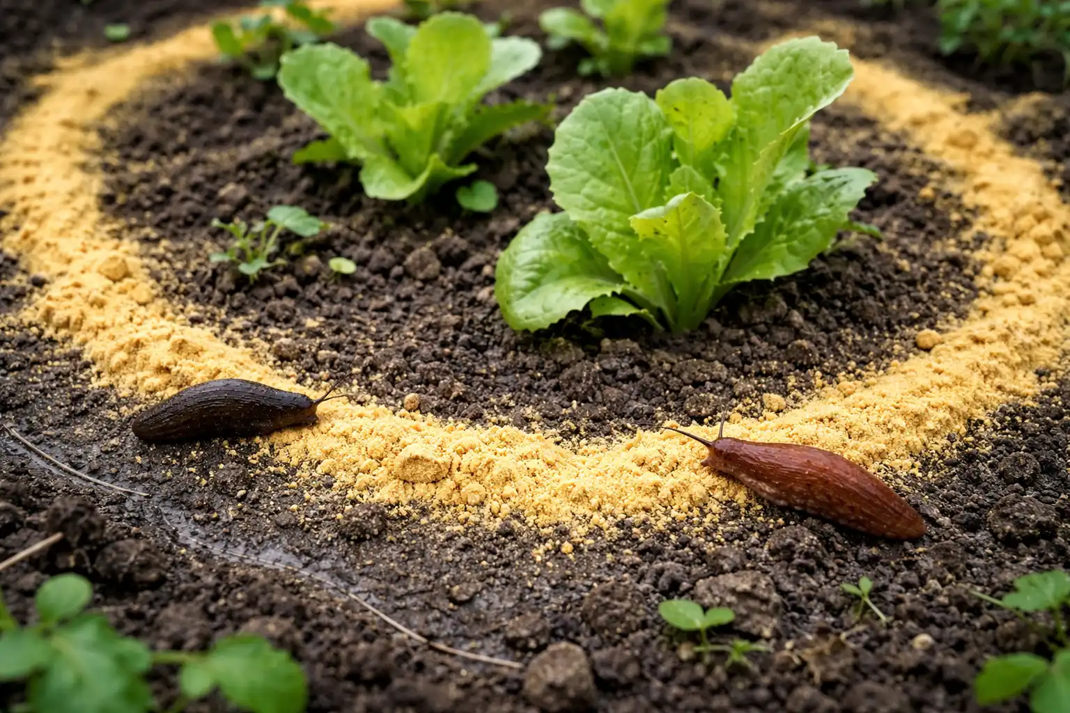 Slaptas niuansas: pabarstykite garstyčiomis ne tik aplink augalus, bet ir po lentomis, akmenimis ar skalūno gabalais, kur šliužai slepiasi nuo dienos saulės. Tai leis panaikinti veisimo centrus tiesiai jų prieglaudose.