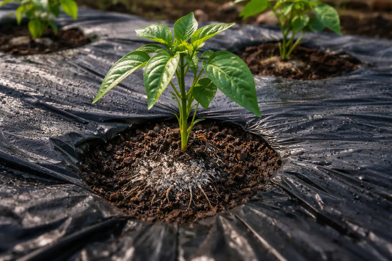Mulčiuokite sodinukus tamsia medžiaga, kad naktį išlaikytumėte per dieną susikaupusią šilumą.