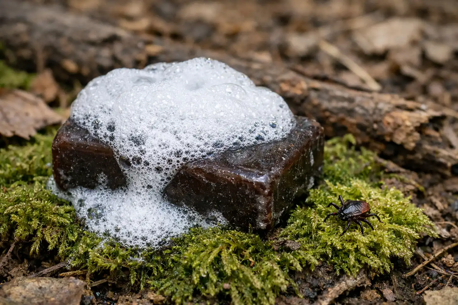 Efektyvumo paslaptis slypi fenoliai Ir gvajakoliskurie yra natūralaus beržo deguto dalis. Erkei, kuri naršo erdvėje pasitelkdama uoslę, stiprus deguto muilo aromatas yra pavojaus signalas.
