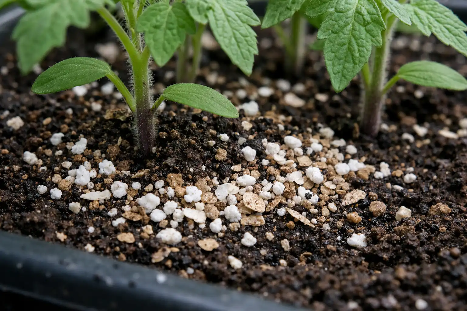 Vermikulitas arba perlitas sulaiko drėgmę ir daro dirvą purią.