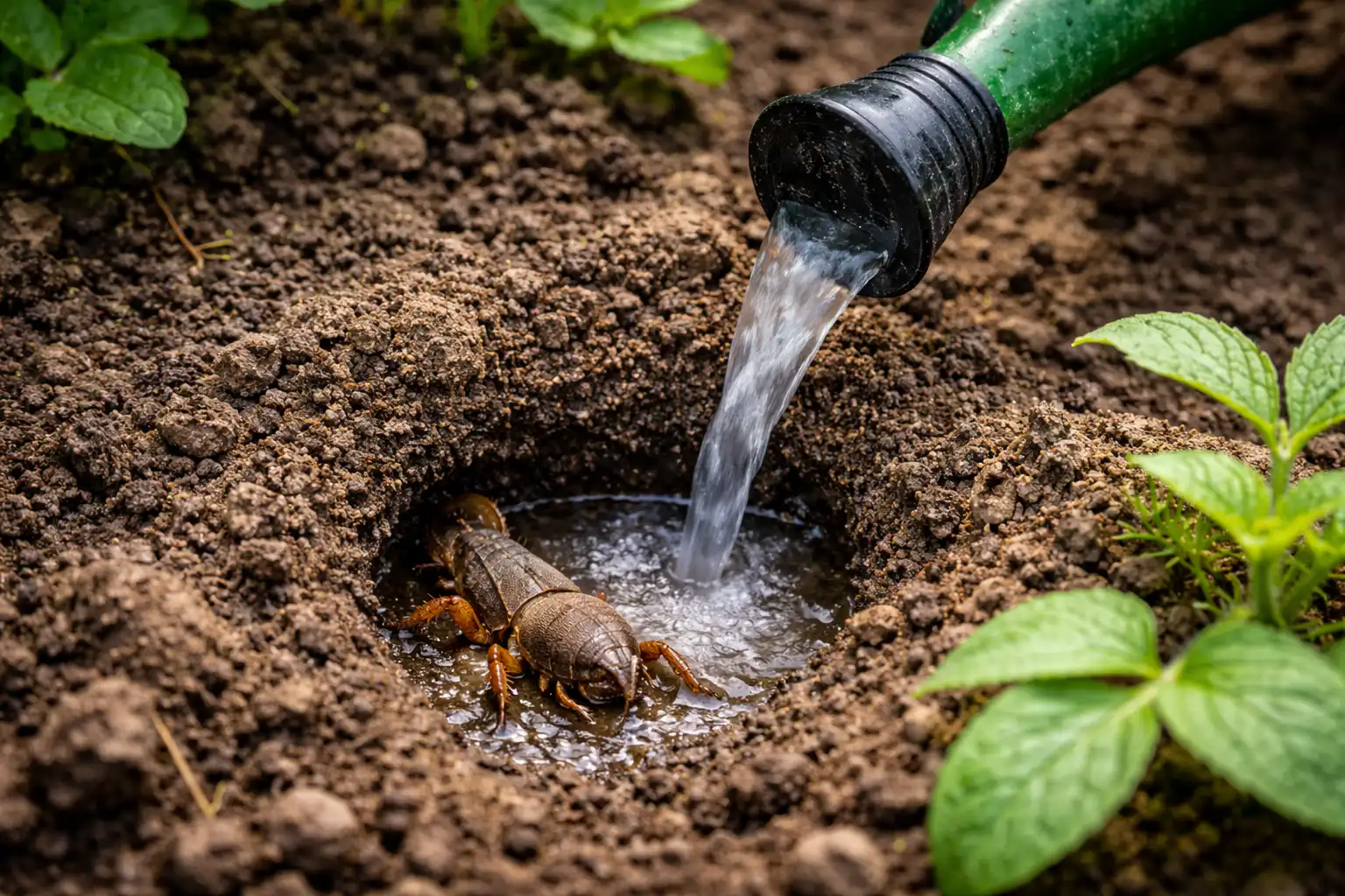 „Svarbiausia paslaptis: sodos tirpalą reikia pilti anksti ryte arba po saulėlydžio, kai kurmio svirplė yra aktyviausia ir yra arčiau žemės paviršiaus.