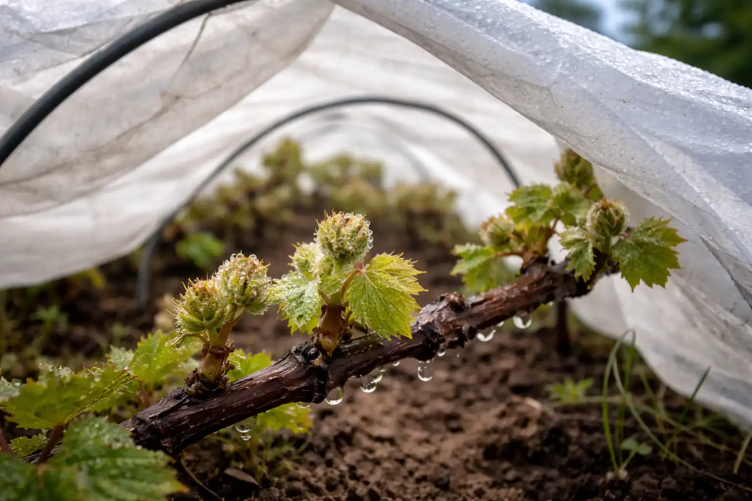 Medžiagos pasirinkimas tiesiogiai veikia temperatūrą po vynmedžio „antklode“. Plastikiniai lakštai dažnai pablogina situaciją ir sukuria šiltnamio efektą, skatinantį ankstyvą pabudimą.