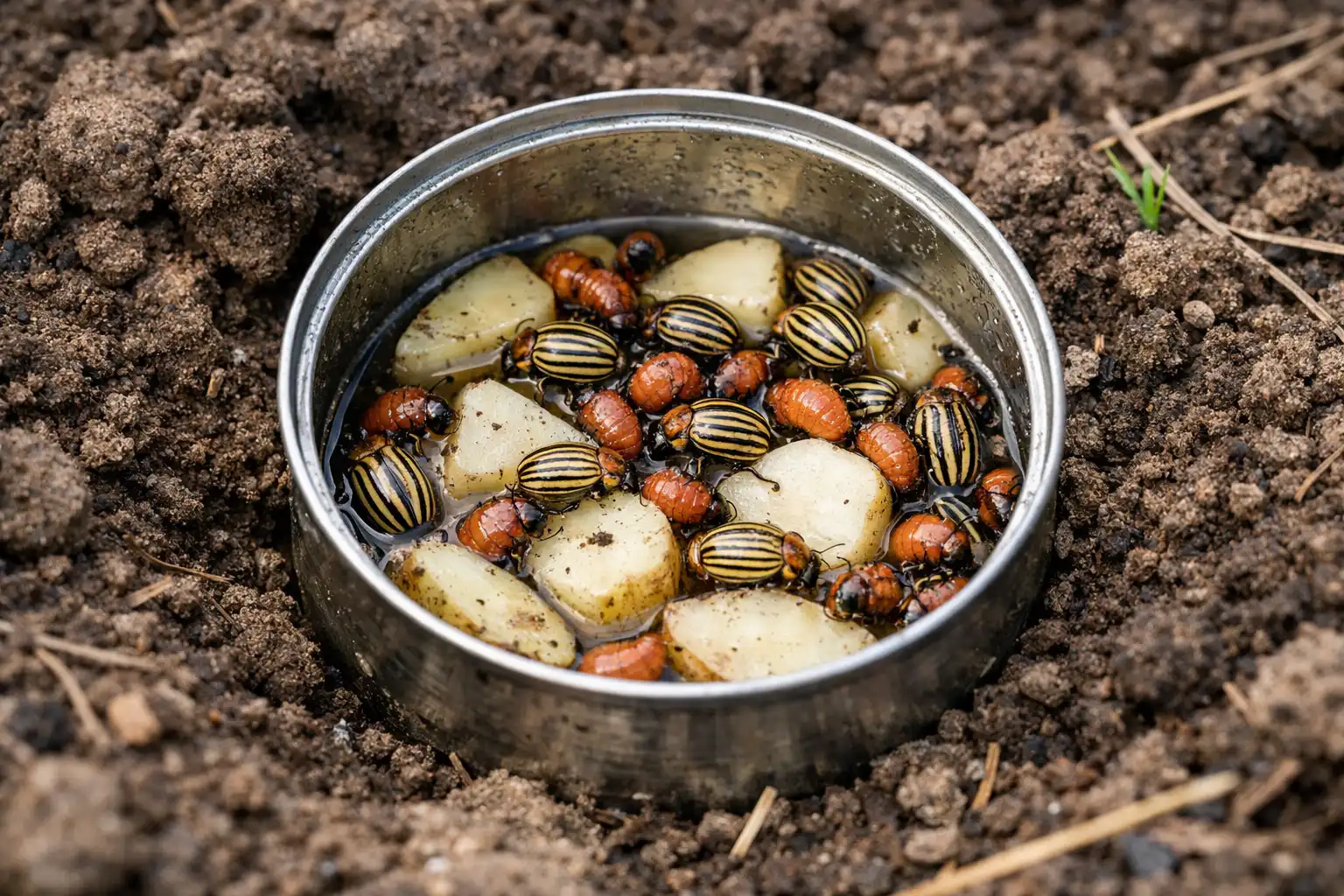 Veiksmingiausias būdas apgauti kenkėją – kurti klaidingi mitybos židiniai. Likus dviem savaitėms iki pagrindinio derliaus sodinimo, senas bulves supjaustykite griežinėliais ir vieną dieną pamirkykite stipriame druskos tirpale. Įdėkite šiuos masalus į skardines, užkasdami juos lygiai su žeme aplink sodo perimetrą.
