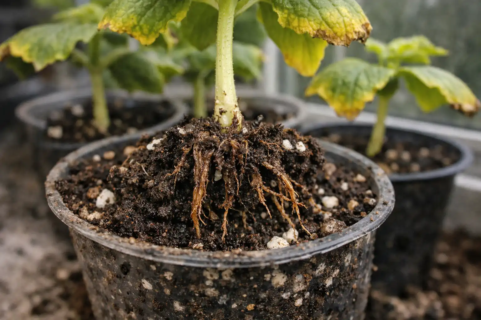 Problema slypi jonų antagonizmas. Kai į ankštą puodą įpilate per daug kalio, tai tiesiogine prasme išstumia magnį ir kalcį. Dėl to augalas kenčia nuo trūkumo, net jei dirvoje gausu mikroelementų.