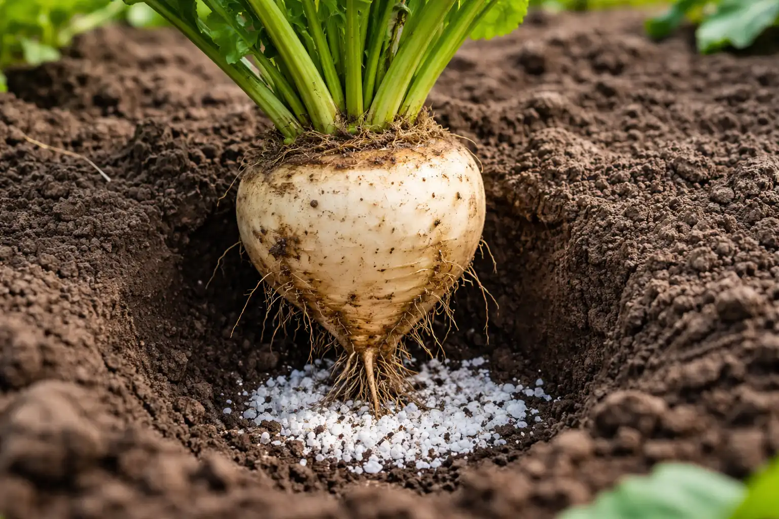 Kalvėjimas nereikalingas; be to, virš žemės išsikišusi šakniavaisių dalis yra normalus augalo vystymosi procesas.
