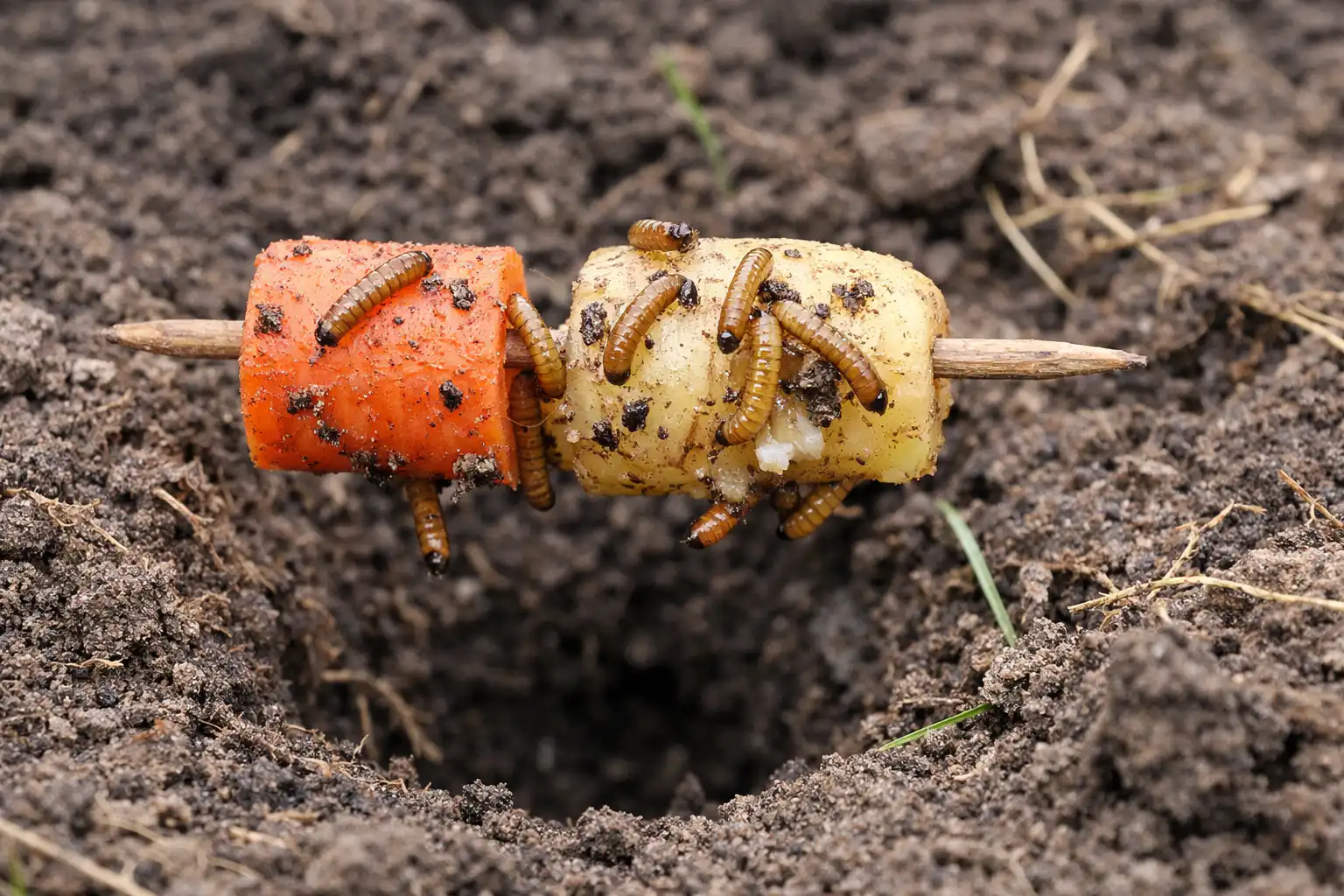 Niuansas iš praktikos: kad spąstai geriau veiktų, daržovių gabaliukus pamirkykite nerafinuotame saulėgrąžų aliejuje – stiprus kvapas traukia vielinis kirminas iš viso lovos spindulio.