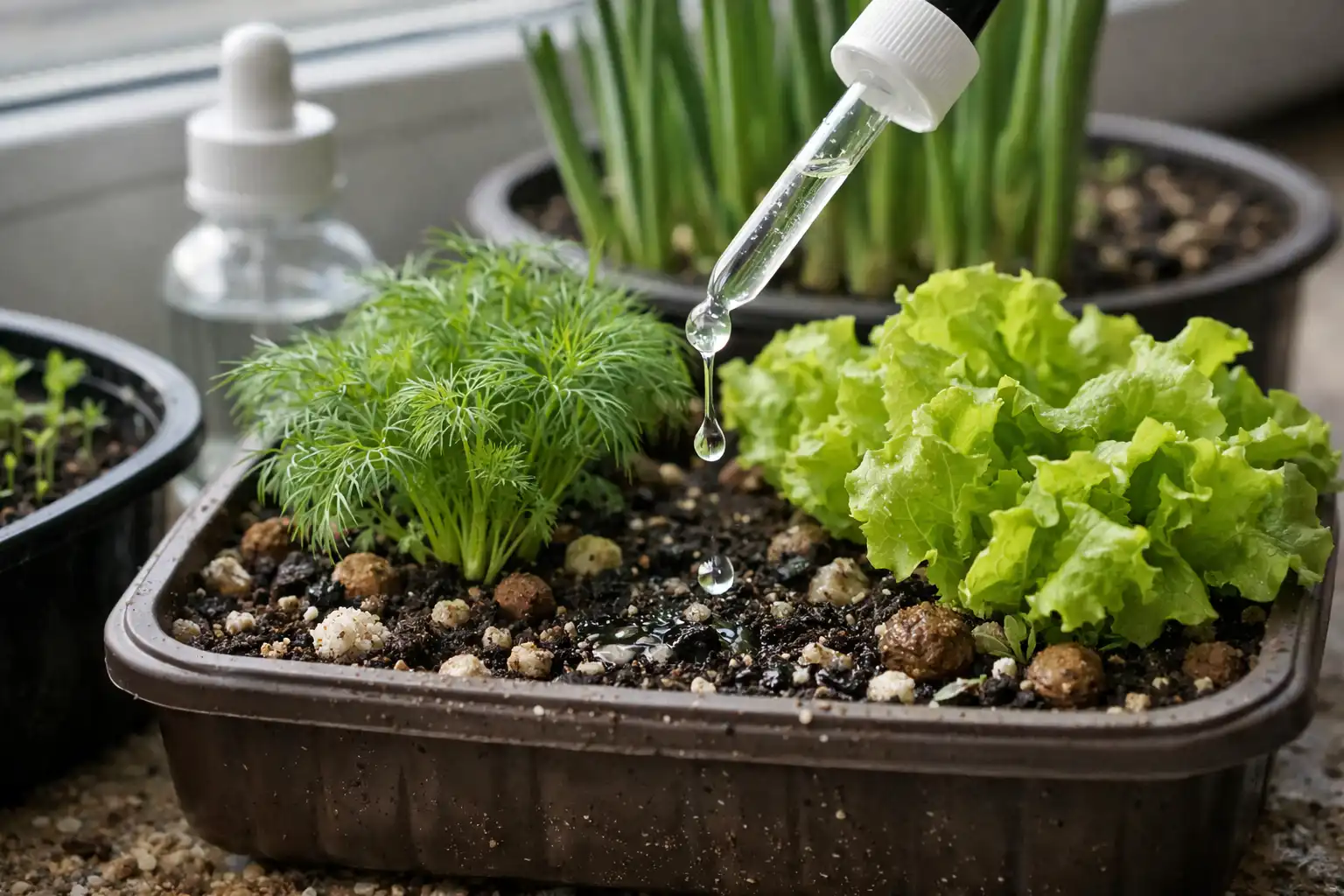 Naudojant kokybišką dirvą, trumpaamžiams pasėliams, pavyzdžiui, salotoms, papildomų priedų nereikia.