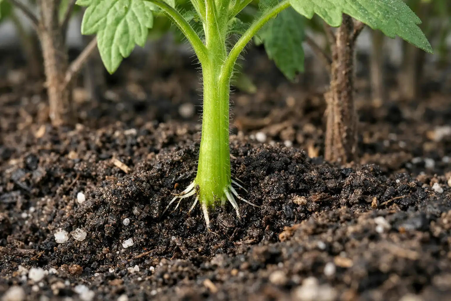 Slaptas niuansas: jei pomidorų daigai tampa kieti, neskubėkite jų užlieti azotu. Pirmiausia pašalinkite streso priežastį (šaltį, sausrą, susigrūdimą), leiskite augalui porą dienų prisitaikyti ir tik tada atlikite minkštą šaknų maitinimą kompleksinėmis trąšomis su vienodu makroelementų santykiu.