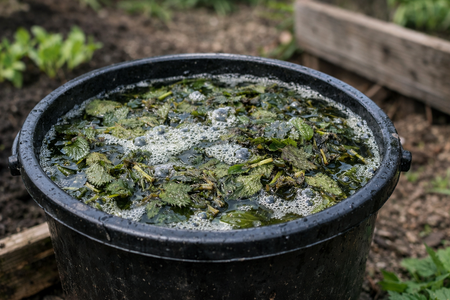 Jaunos gegužės dilgėlės sukaupia milžinišką kiekį azoto, kalio Ir magnio. Skirtingai nuo mineralinių granulių, kurios ilgai ištirpsta žemėje, organinę užpilą augalai pasisavina beveik akimirksniu. Tai idealus pasirinkimas pirmą kartą šeriant pomidorus, paprikas ir agurkus.
