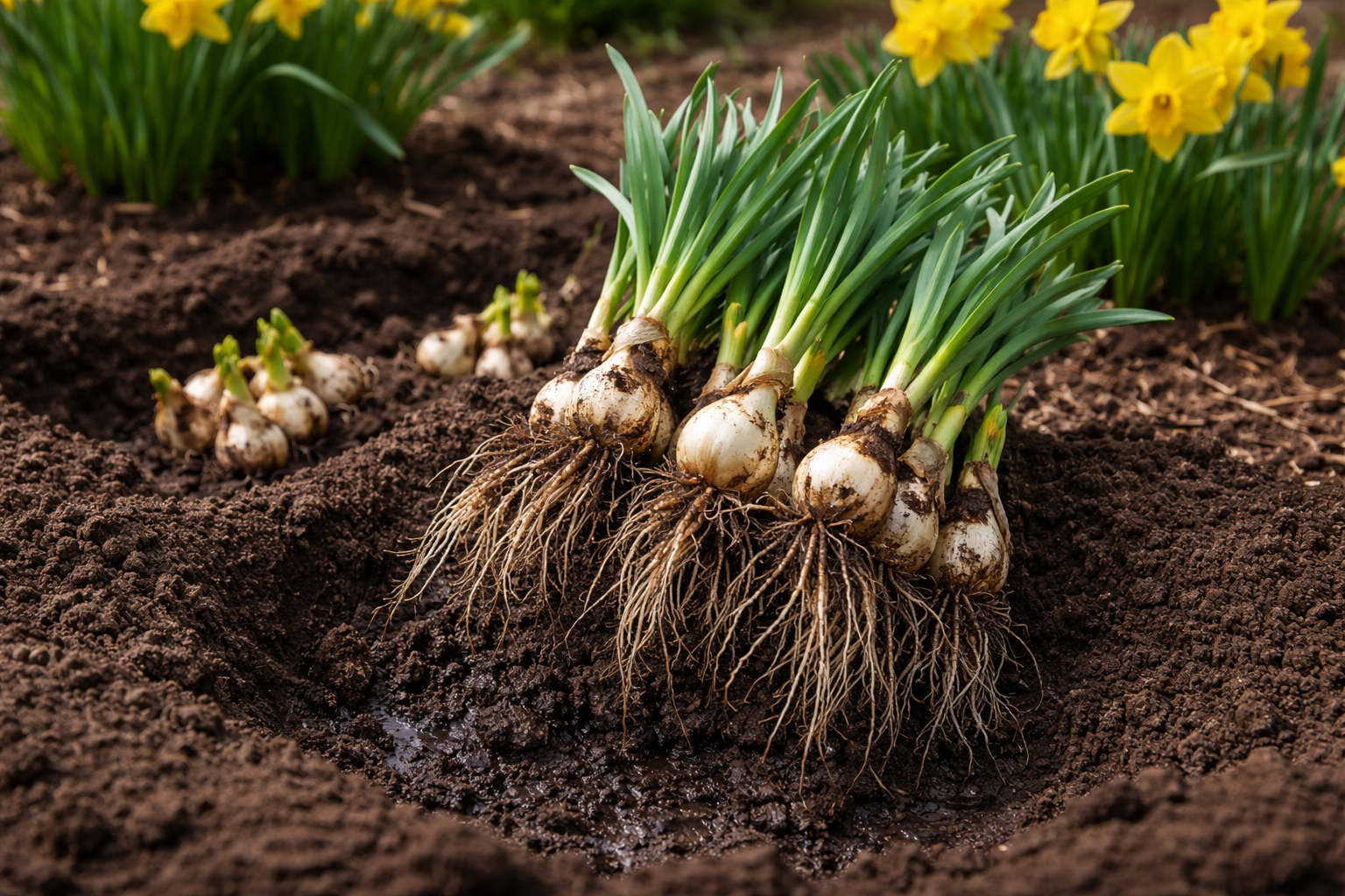 Slaptas niuansas: jei narcizai nežydi, pavasarį pasistenkite atsargiai nugrėbti dirvą nuo svogūnėlių kaklelių. Dažnai jie ištraukiami per giliai, o augalui tiesiog neužtenka jėgų prasibrauti per sunkaus dirvožemio sluoksnį ir suformuoti visavertį žiedkotį.