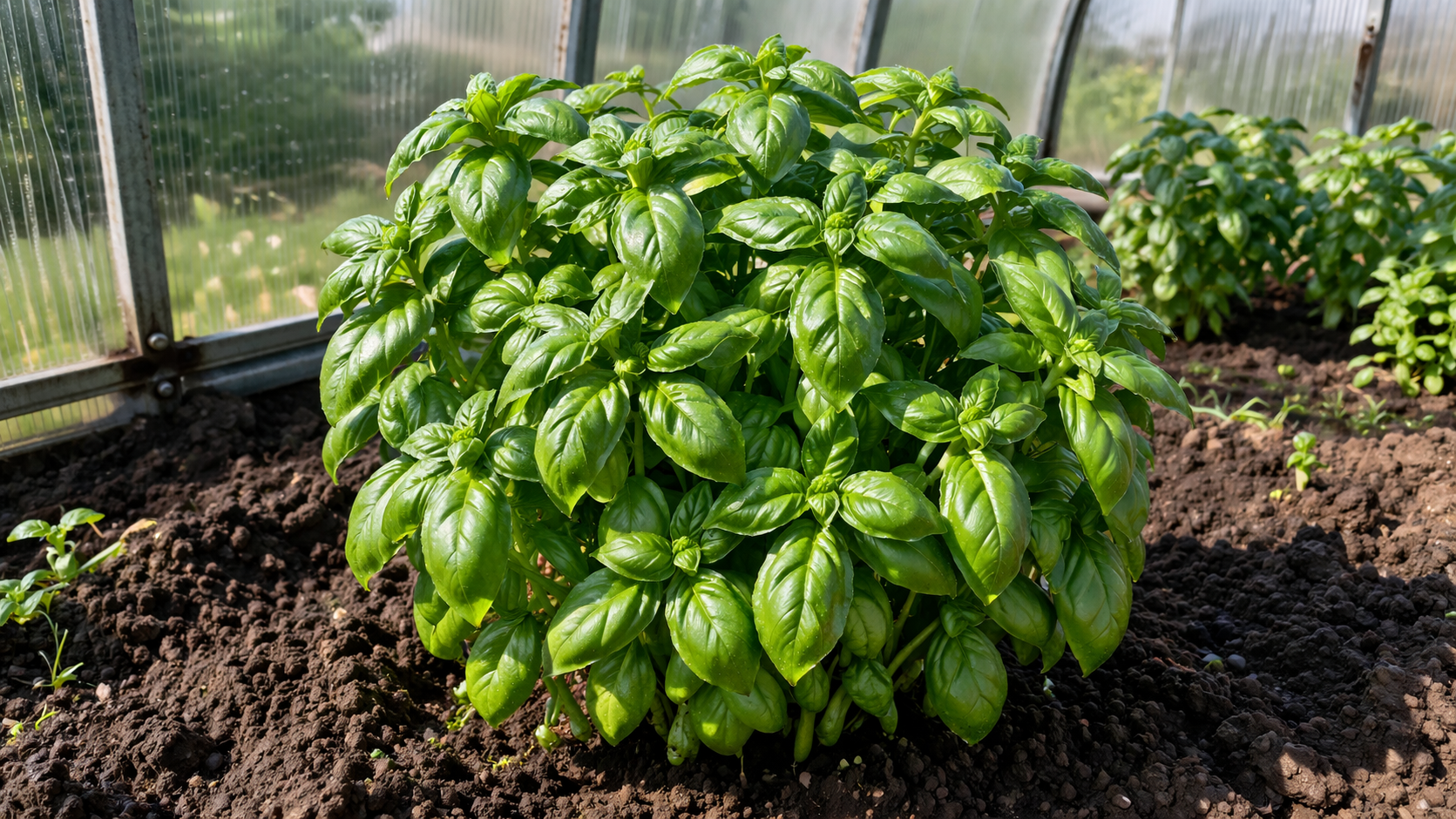 Bazilikas šiltnamyje reikalauja tik dėmesio temperatūrai ir laiku genėti.