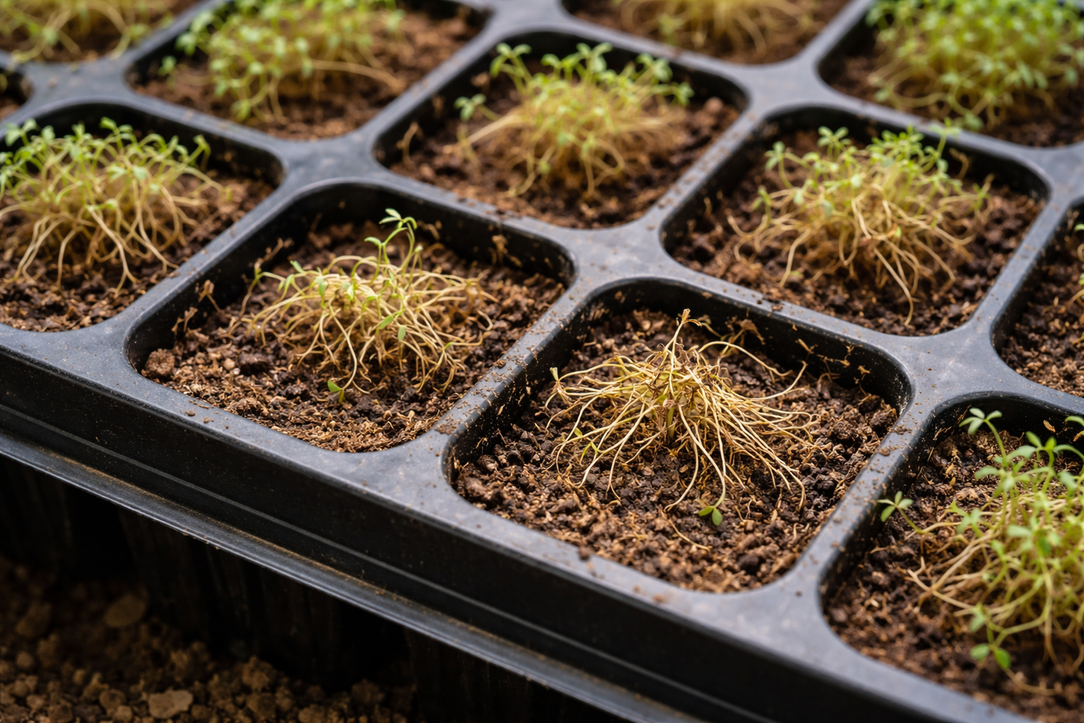 Ne, atlaisvinus kasetes mažose ląstelėse tik pažeisite siūlus primenančias šaknis ir paspartinsite daigų žūtį.