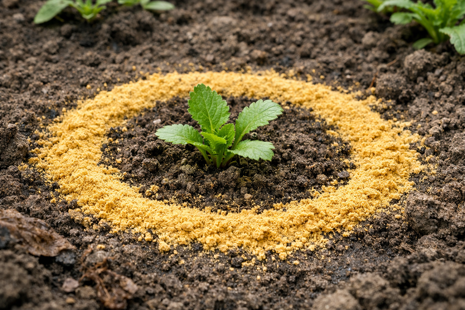 Apipurkškite dirvą tiesiai aplink jaunų augalų stiebus.