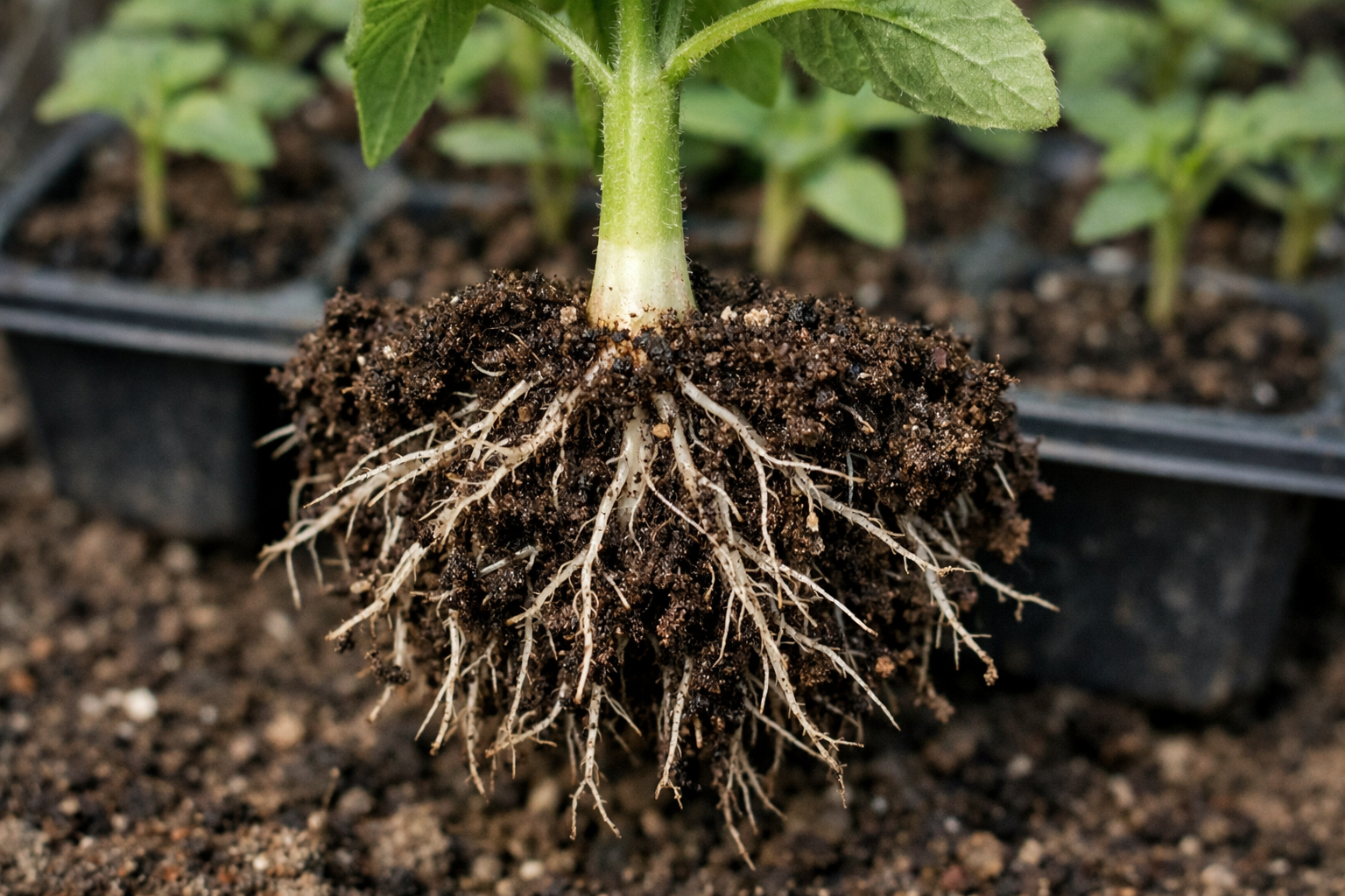 Augalų išgyvenamumo gerinimas po persodinimo į žemę.