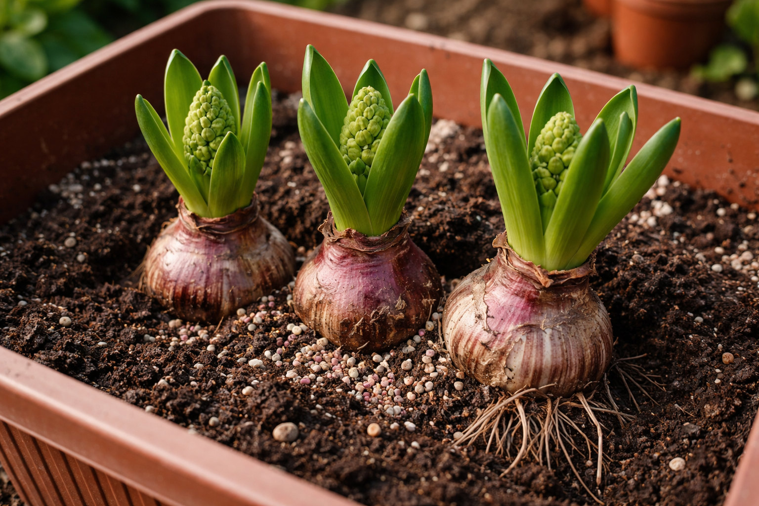 Slaptas niuansas: norint, kad hiacintas būtų garantuotas, nuvytus žiedams (bet kol nepagelsta lapai), reikia įpilti kalio sulfato. Tai signalizuoja augalui, kad laikas formuoti pumpurą kitiems metams.