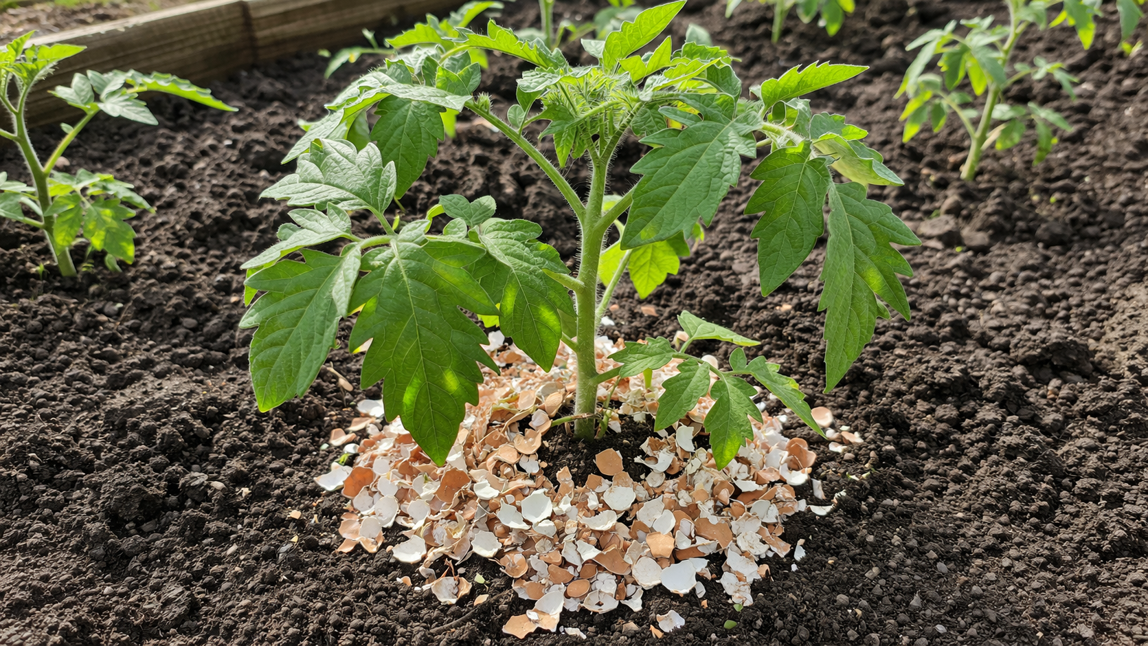 Pavasarį dirva dažnai užmirksta ir parūgštėja, o tai trukdo įsisavinti azoto. Kiaušinių dulkės veikia kaip švelnus deoksidatorius. Skirtingai nuo kalkių ar dolomito miltų, jis veikia palaipsniui, nesudegindamas švelnių pomidorų šaknų.