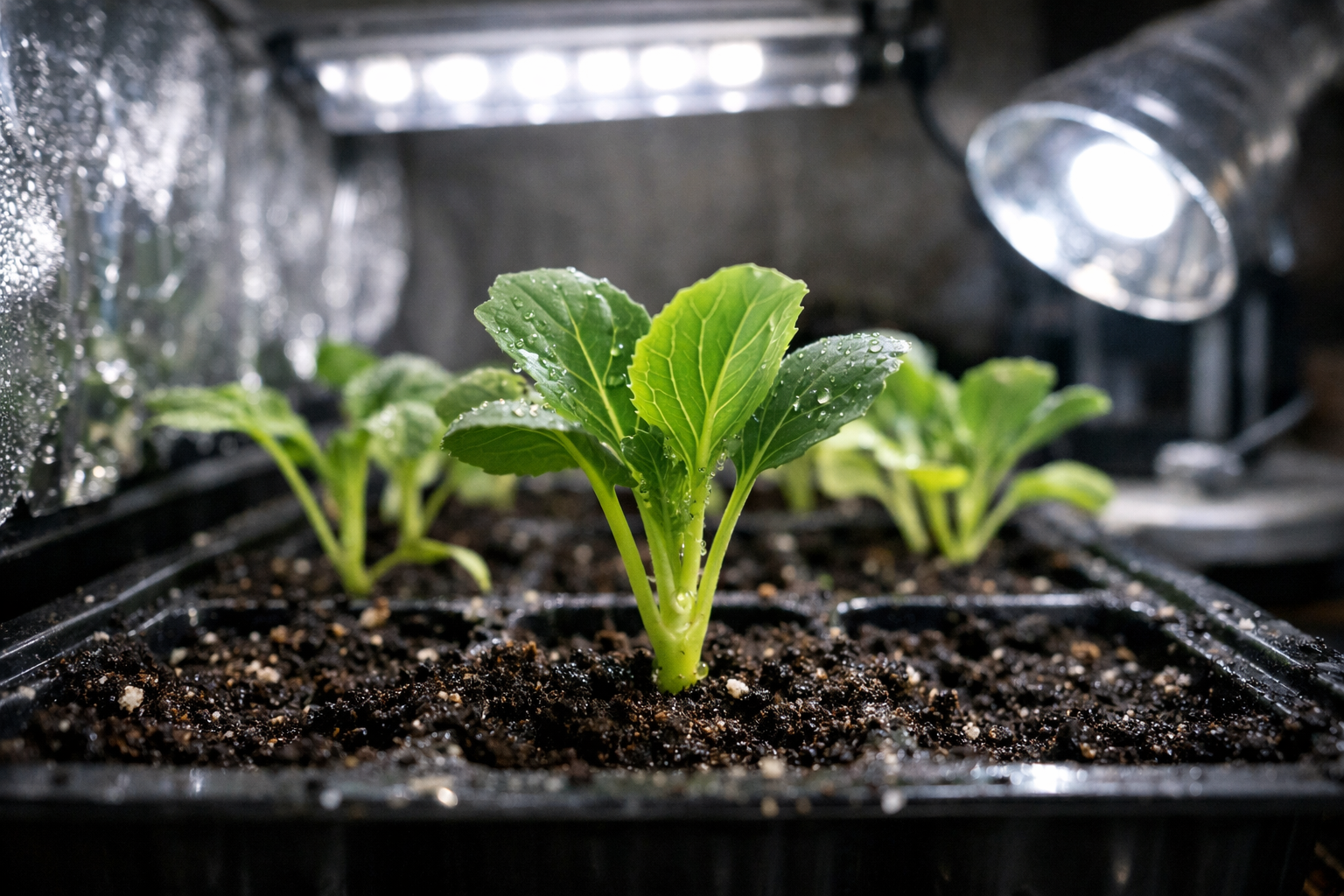 Tinkamas apšvietimas ir temperatūros kontrolė užtikrina tvirtus daigus ankstyvam derliui.