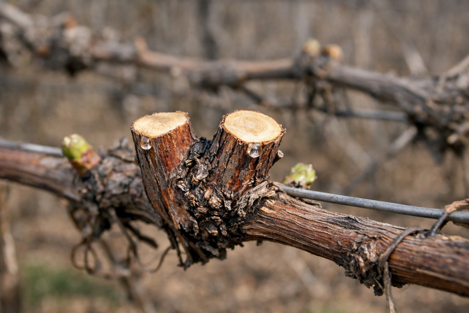 Pagrindinis principas, kurį sukūriau bėgant metams: vynuogės neša vaisius ant einamųjų metų vynmedžio, kuris išaugo iš dvejų metų medžio. Todėl mes negailestingai pašaliname senas šakas, palikdami tik pagrindą ir šviežias strėles.