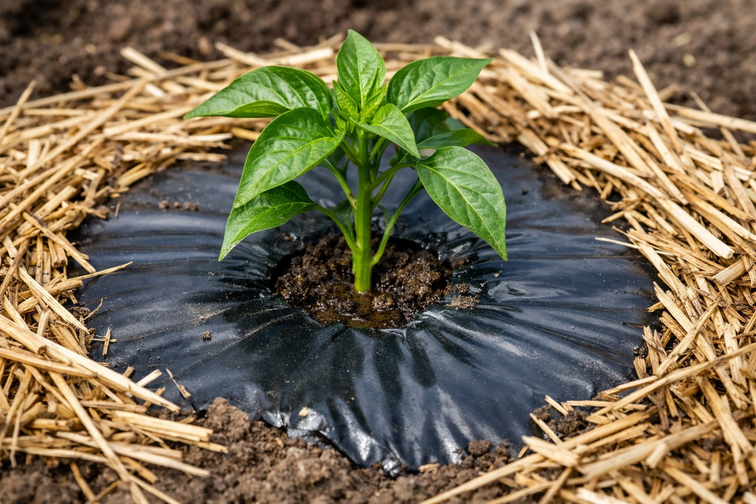 Kad pipirai pirmąją savaitę neišdžiūtų, aplink jį būtina sukurti tinkamą mikroklimatą. Mulčiavimas – tai yra pagrindas, be kurio drėgmė per kelias valandas palieka dirvą po pavasario saule.