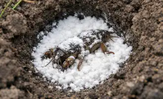 Aptepus kamieną specialiais sodo klijais, bus sukurta neįveikiama kliūtis ropojantiems vabzdžiams.