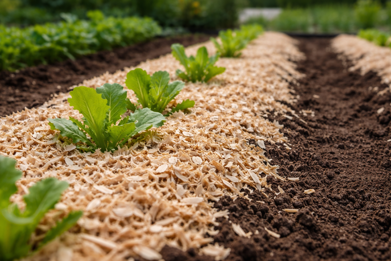 Medienos atliekų naudojimas turi nemažai praktinių pranašumų, palyginti su šiaudais, durpėmis ar sintetinėmis plėvelėmis. Ši medžiaga visapusiškai gerina dirvožemio kokybę.