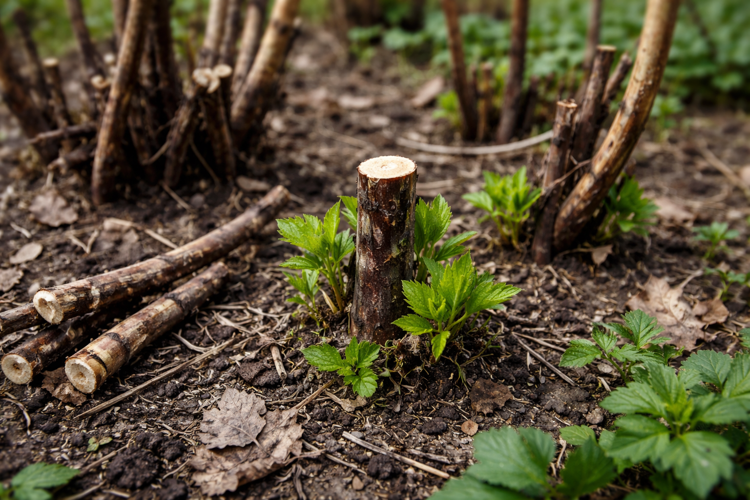 Uogakrūmių ploni stiebai puikiai išdžiūsta ir prigyja savaime, nenaudojant apsauginių mastikos.