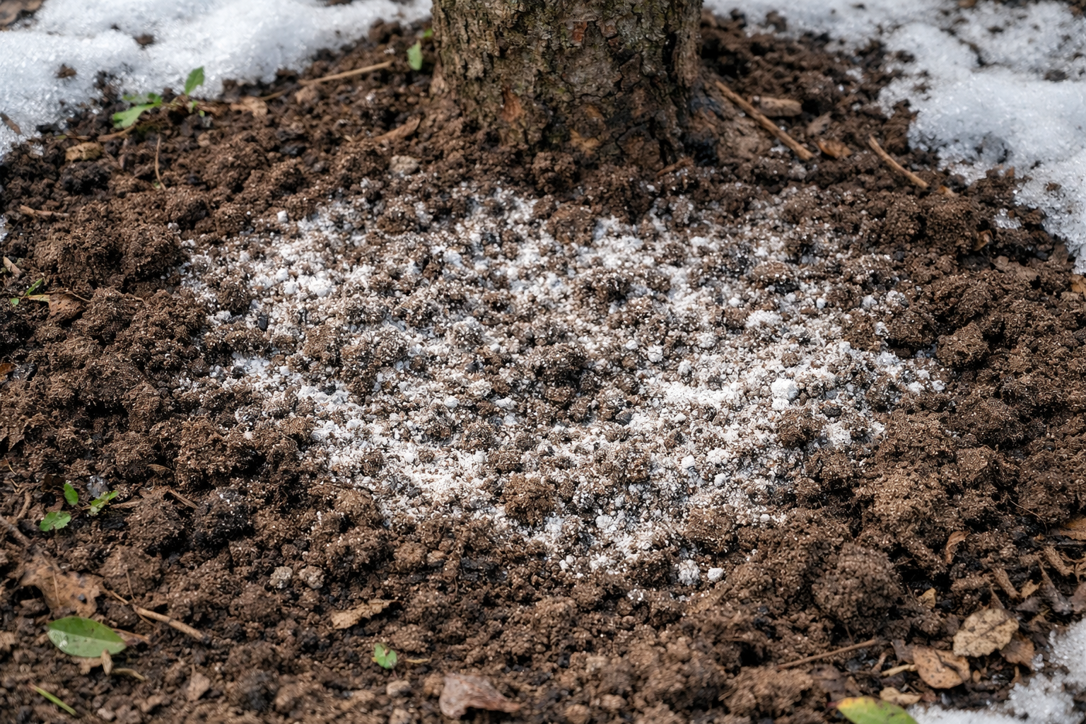 Miltelių pabarstymas tiesiai ant tirpstančio sniego plutos bus pats tinkamiausias sprendimas sklandžiai ir giliai įsigerti.
