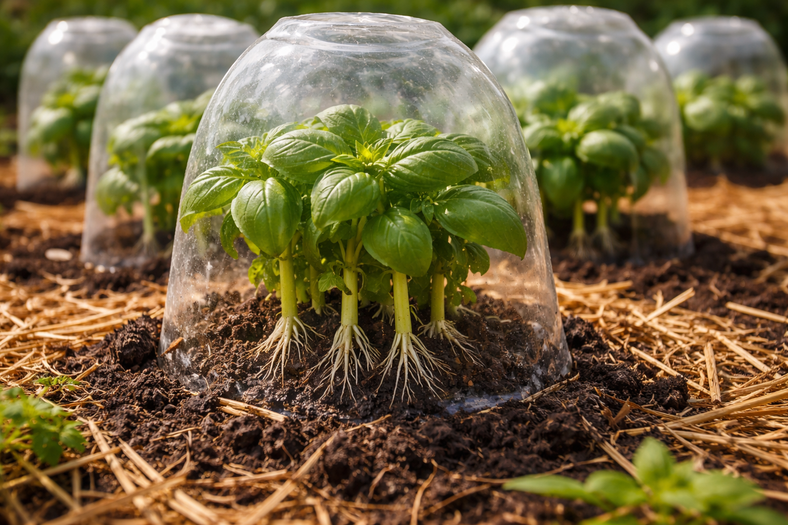 Kiekvieną krūmą sandariai uždenkite skaidraus plastiko buteliu, kurio dugnas nupjautas.